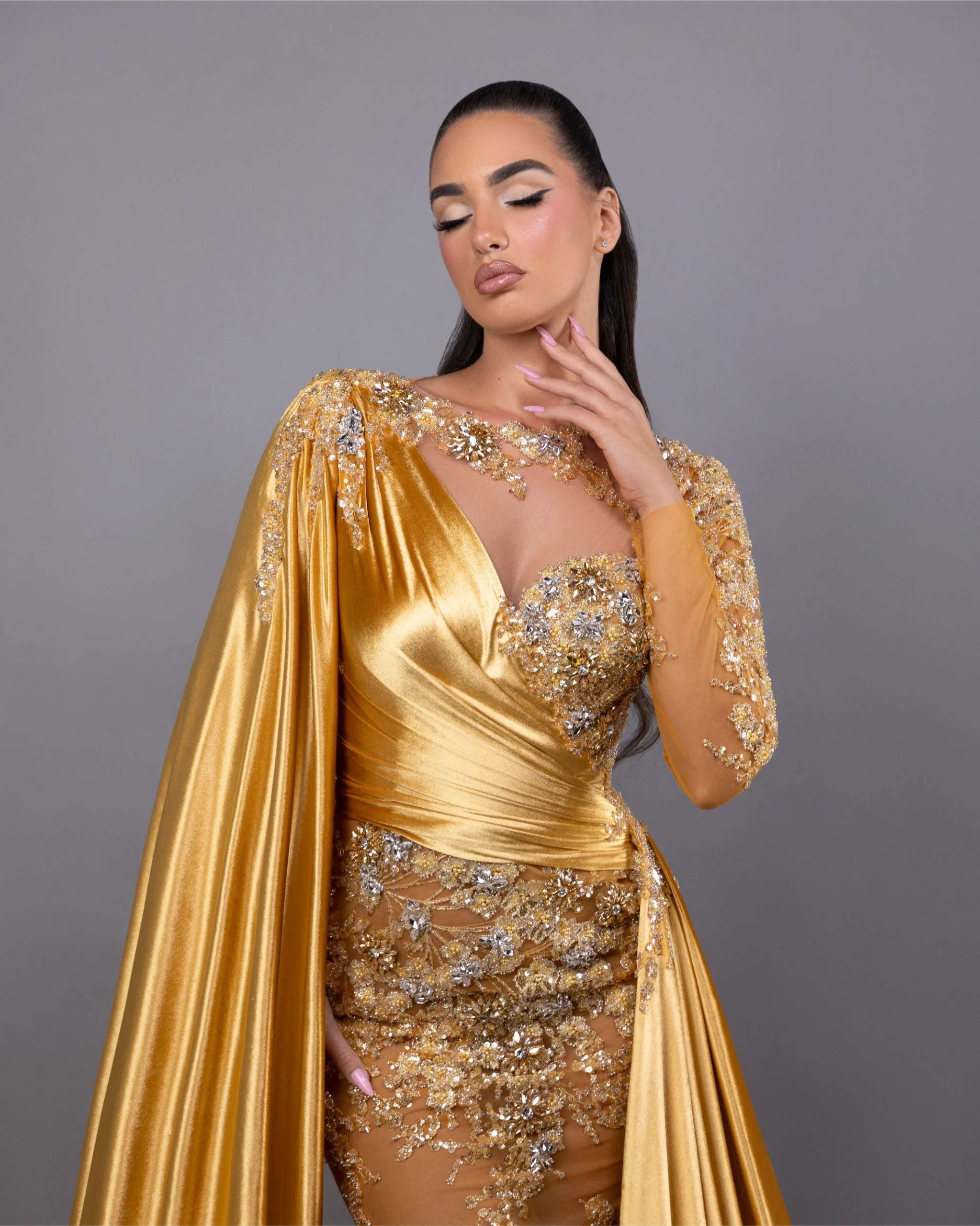 High-quality velvet and fabric,Side velvet cape with embellishments,Embellishments: Silver stones